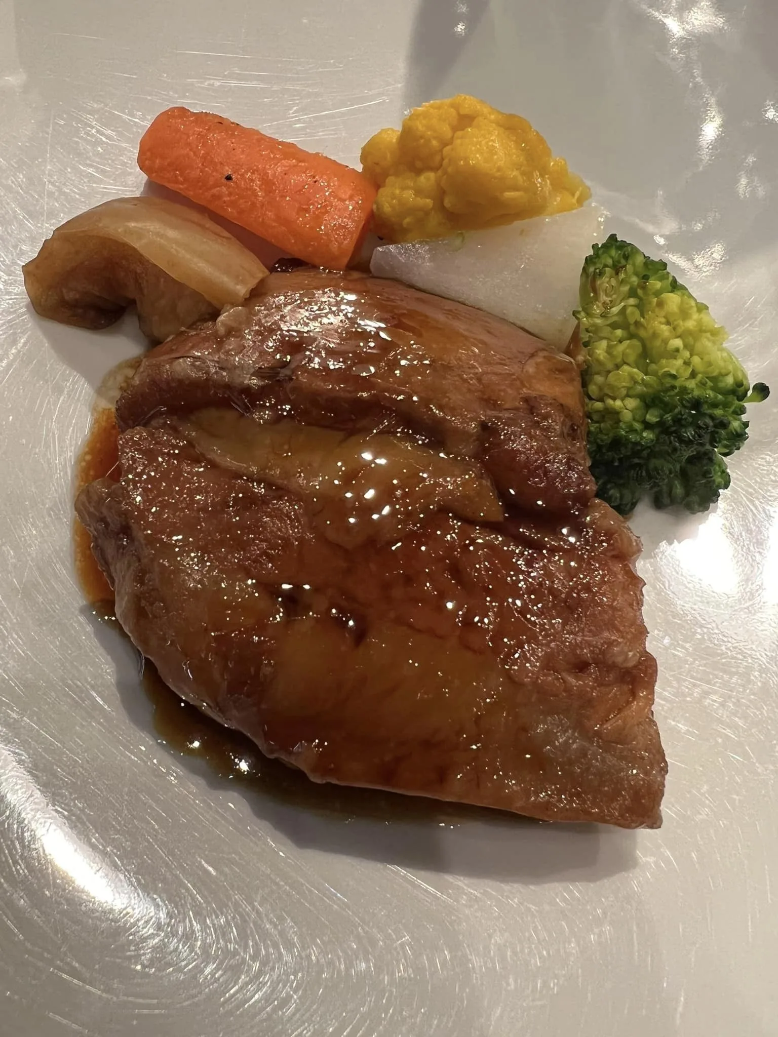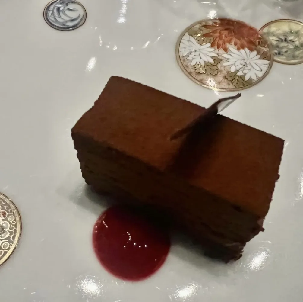 Deliziosi i secondi, tanto il maialino laccato, ormai divenuto iconico, stavolta servito con tuberi, daikon, mela dolce cotta lungamente e cavolfiori, quanto il filetto di pescato con le sue due salse, una allo champagne ed una più marcatamente nipponica ed aromatica, in cui la prevalenza di agrumi e Tamari Shoyu era ben percepibile. Una cucina opulenta che trae il meglio dalle correnti gastronomiche di predilezione del bravissimo Wicky che con gli stessi occhi dei suoi 7 anni, continua a mettersi in gioco per cercare un utopico “oro del Klondike” che viene personificato dalla stessa sorpresa dei suoi commensali al morso dei suoi piatti.