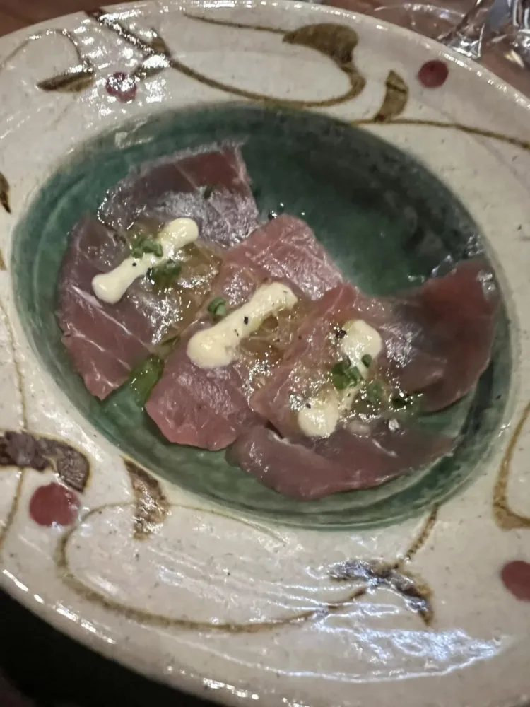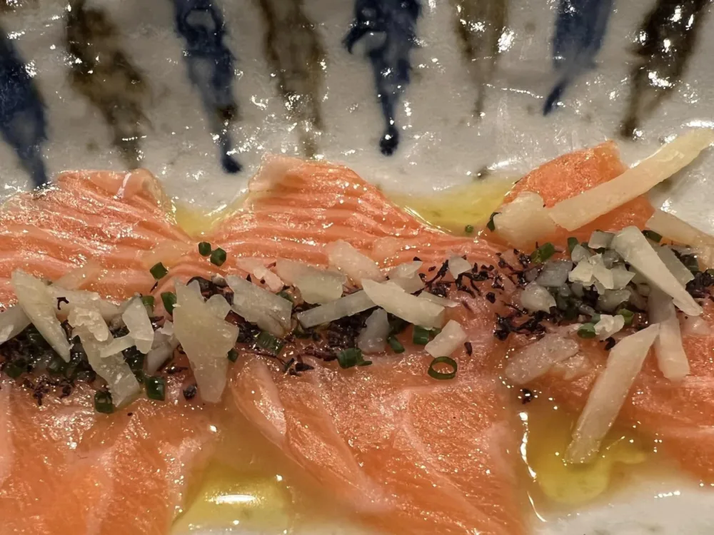 Carpaccio di Salmone, Pecorino Sardo, Ponzu, Negi e Olio Evo