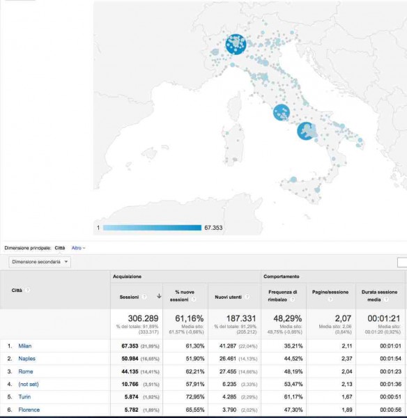 Ma la sopresa più clamorosa è il sorpasso di Milano, tradizionalmente piazzata sempre al terzo posto, che questo mese praticamente raddoppia diventando la città italiana dove si sono registrate le maggiori letture, quasi 70mila. Il che per un blog percepito come espressione della gastronomia del Sud è una soddisfazione grandissima che ci sprona a puntare sempre di più su temi di interessi generale e alle realtà gastronomiche da Roma in su.