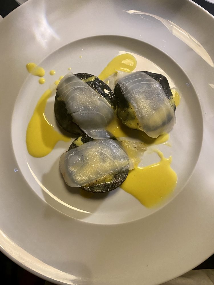 Bottoni ripieni di carbonara, lardo di mare e salsa – Winehouse