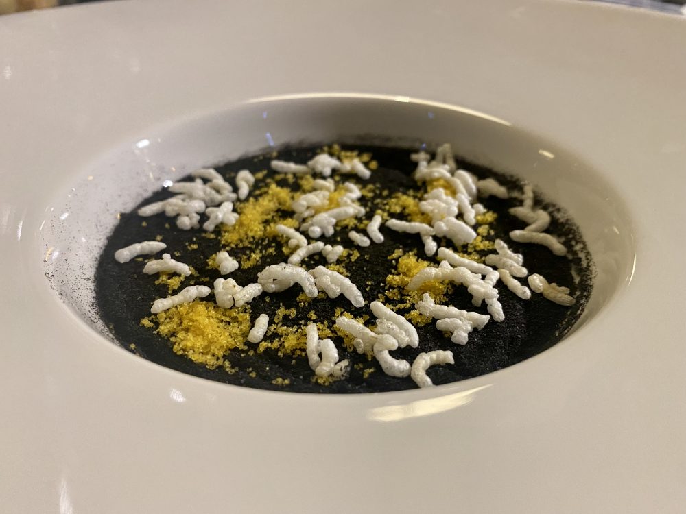 Aspettando l’apertura del Ristorante Indaco, per il 27 p.v. al Winehouse Pasquale Palamaro ha preparato: Cremoso di bufala, gamberi gobbetti (specie poco conosciuta) e carciofo arrostito; Risi, bottarga e pesto limone di Procida; Bottoni ripieni di carbonara, lardo di mare e salsa.