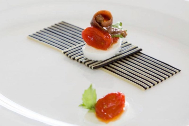 Reinterpretare le tradizioni è sempre una cosa difficile, figuriamoci quando si fondono le tradizioni per eccellenza del nostro Paese gli spaghetti e la pizza. Un lavoro concettuale sulla pasta, pensata in una chiave completamente nuova. Solo la provocazione e la lucida follia di un cuoco geniale come Davide Scabin poteva partorire.