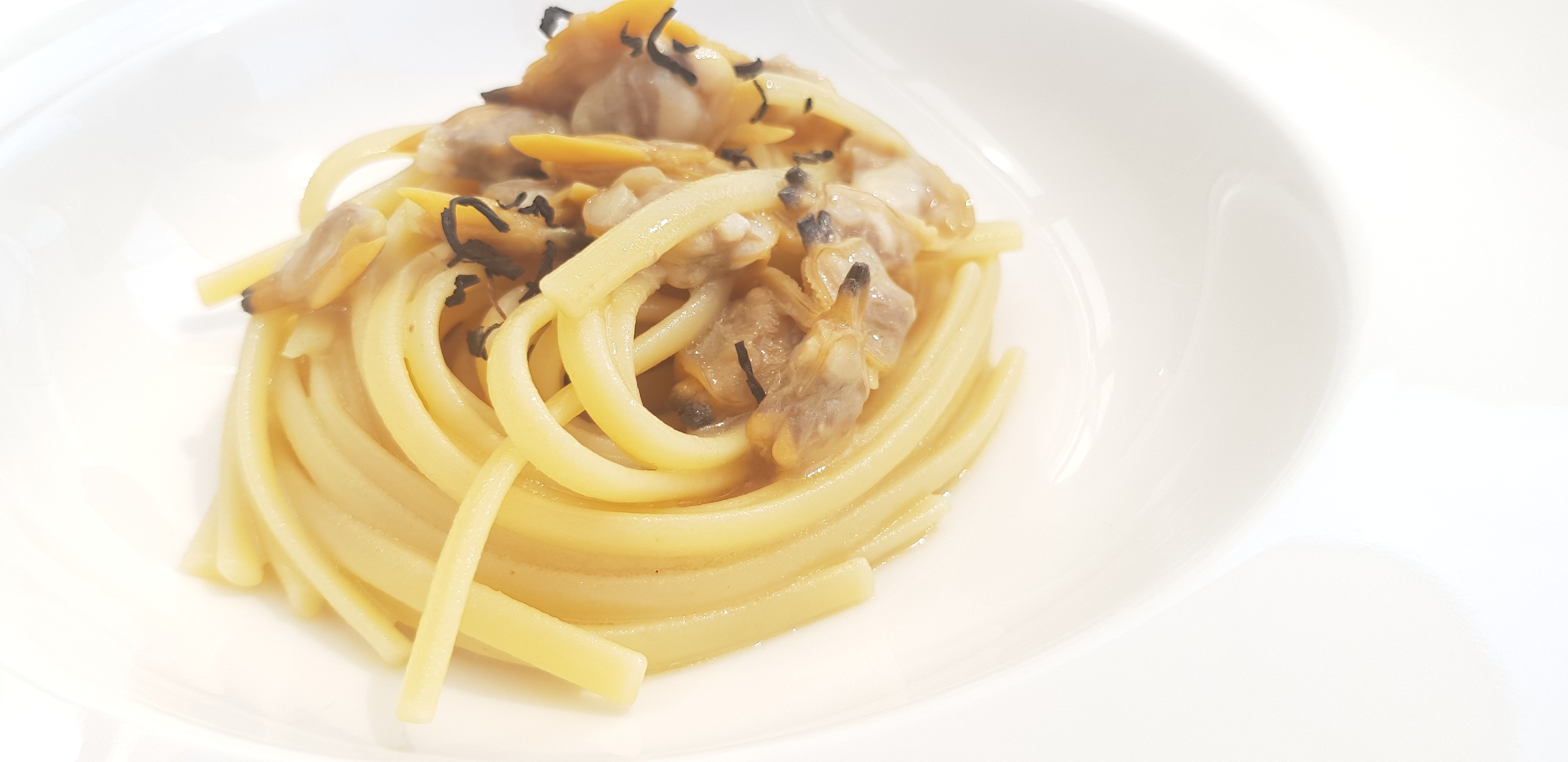 Lunghezza estrema con il secondo dei primi piatti, uno dei must della scuderia, linguine con vongole e tè nero affumicato.