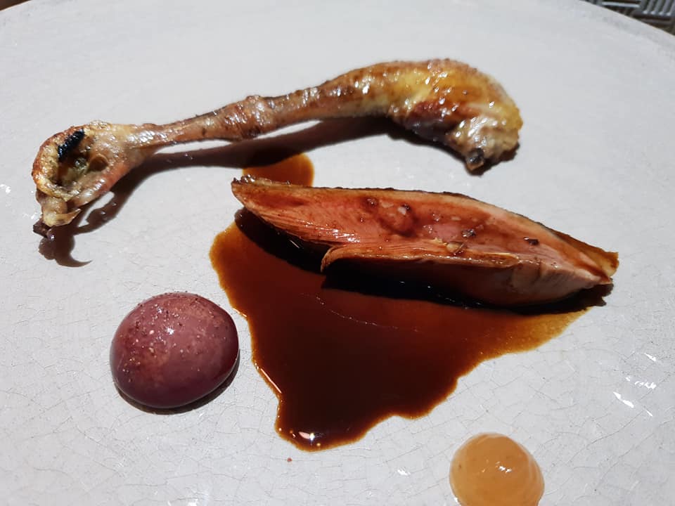 Sui secondi Antonio mostra tutte le sue basi classiche. La razza cotta con la salsa maître d’hotel, a base di burro, prezzemolo e fumetto di pesce, servito con il topinambur in due consistenze, fritto ed in crema, terminata con il lemon curd ed una salsa di dragoncello. Il piccione e mela, la zampetta da rosicchiare ed il petto servito con la propria salsa, in accompagnamento una terrina di fegatini laccata con vino rosso e mele e poi una mostarda di mele cotogne. Infine il capriolo, la sella è servita con la propria salsa, crema di castagne aromatizzata al Gran Marniner, insalata di mirtilli e scalogno. Classicità si, ma con intelligenza, le note dell’acidità sempre presenti, tutto molto centrato.