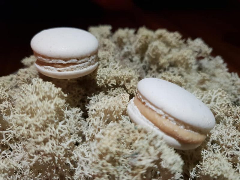 Il pre dessert è un macaron farcito con una terrina di foie gras e mosto cotto. Poi uva, alloro e bufala. Quattro tipologie di uva la bianca, la rosé, la pizzutello e la verjus, quest’ultima marinata una notte nel proprio succo e vengono servite con una crema di alloro, spuma di bufala, meringa fresca e cialda al cioccolato bianco. La nocciola, servita in tre consistenze, in crema, caramello e biscotto, camicia di cioccolato al latte e oro alimentare, in omaggio a Credric Crolet, veramente delizioso. L’altro piatto del viaggio insieme al panzerotto.