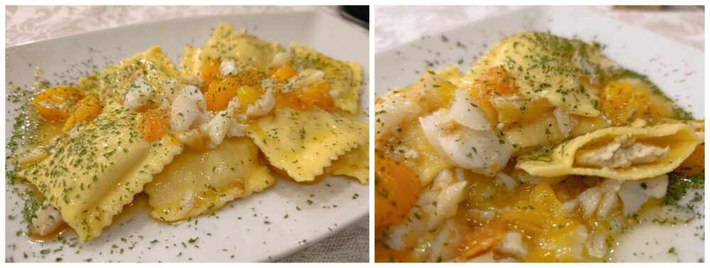 Non essendoci un menù scritto per scegliere i primi ci dobbiamo affidare alla memoria e ai consigli del ragazzo in sala. Ci facciamo dunque tentare e convincere da due must dello Zoppicone. I Ravioli (11 euro) ripieni di ricotta e baccalà con un sughetto di squisiti pomodorini gialli e, naturalmente, Baccalà che viene esaltato a dovere in questo piatto che è il più delicato tra i due.