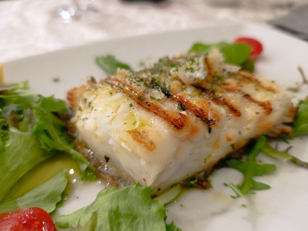 Quel Baccalà che ci invoglia ancora ad ordinarlo, anche per il secondo piatto, nella versione arrostita (13 euro). Un bel pezzo ben caldo fino al cuore e che si lascia mangiare fino all’ultima briciola, pelle abbrustolita compresa.