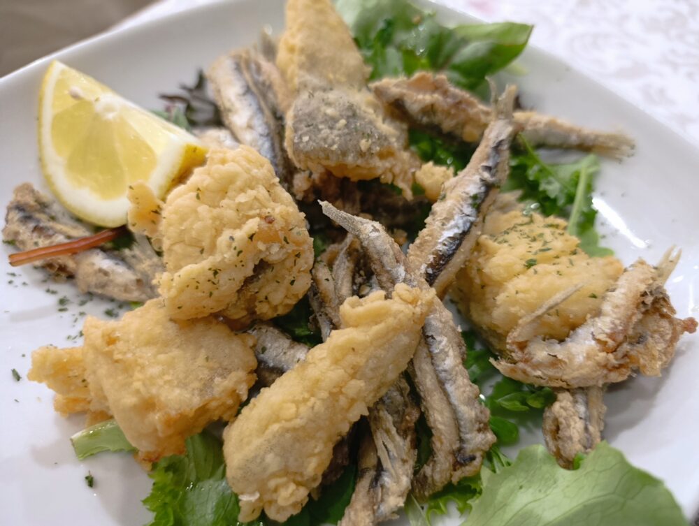 Si parte con l’irrinunciabile Fritto dello Zoppicone (8 euro) con bocconcini di Baccalà e Alici. Un fritto asciutto, croccante, senza residui carbonizzati e soprattutto buono, buonissimo.