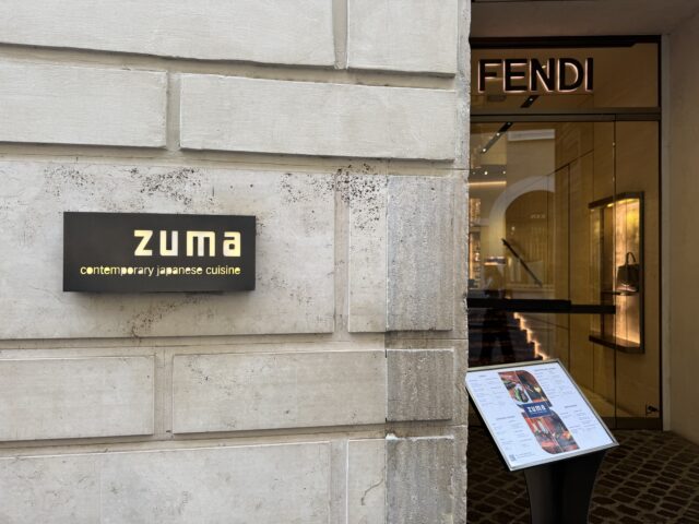 Nello spazio della residenza seicentesca affacciata su via dei Condotti, originariamente appartenuto alla famiglia Ludovisi Boncompagni e noto come Palazzo Fendi, Zuma Roma, prima sede aperta in Italia, porta dal 2016 la cucina dell’izakaya giapponese in una delle cornici più eleganti della città. Luci soffuse, legno naturale e profumi di robata grill disegnano un ambiente alla moda, con la sala con vista sui tetti di Roma e una terrazza panoramica sulla città eterna.