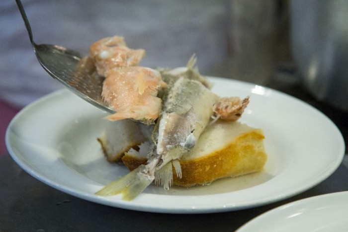 “Quando eravamo in mare”, spiega, “specialmente in estate, restavamo a mangiare sulla barca. Avevamo a poppa un cucinino di fortuna. Uno scorfano, una triglia, un manfrone, uno sbaraglione, mormora, polpo e seppia. Tutto si metteva a cuocere con aglio, prezzemolo, acqua di mare. Se c’erano, mettevamo qualche pomodoro e pane duro”.