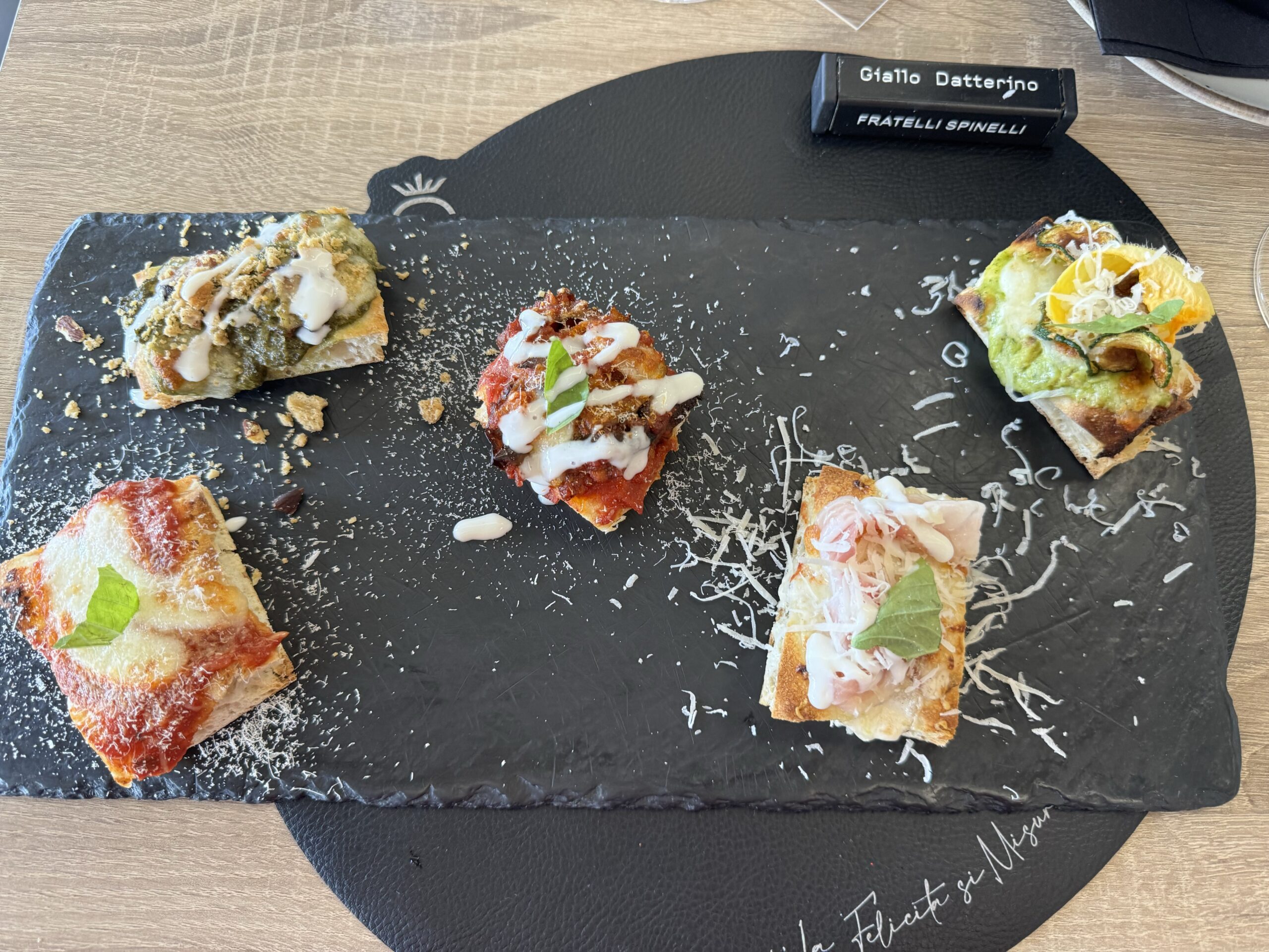 Degustazione pizza in pala: Margherita rivisitata, parmigiana, cacio e pepe, Nerano, salsiccia e friarielli – Giallo Datterino, Villaricca 24/8/2024 Degustazione pizza in pala: Margherita rivisitata, parmigiana, cacio e pepe, Nerano, salsiccia e friarielli – Giallo Datterino, Villaricca← PrecedenteSuccessiva →