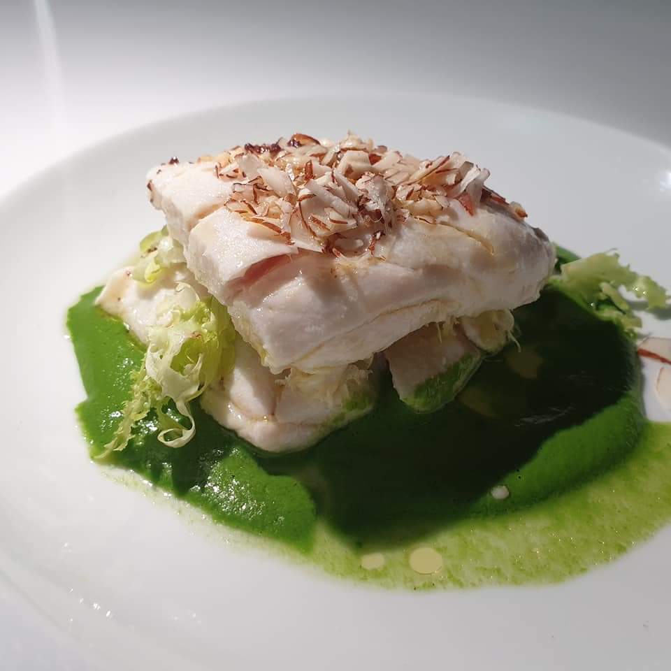 FB_IMG_1568465869614 14/9/2019 Millefoglie di cernia con scarole, olio alle olive nere di Gaeta e granella di mandorle. Il Papavero – Eboli← PrecedenteSuccessiva →
