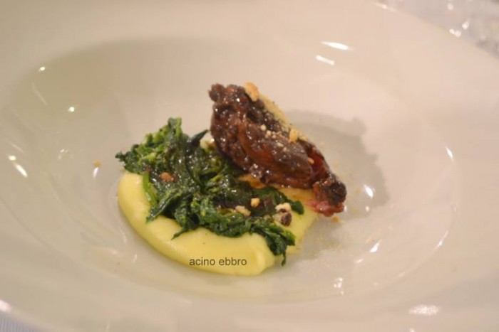 Guancia di Vitello su pure di sedano, rape, friarielli e polvere di tarallo di Vincenzo Guarino del ristorante L’Accanto del Grand’Hotel Angiolieri