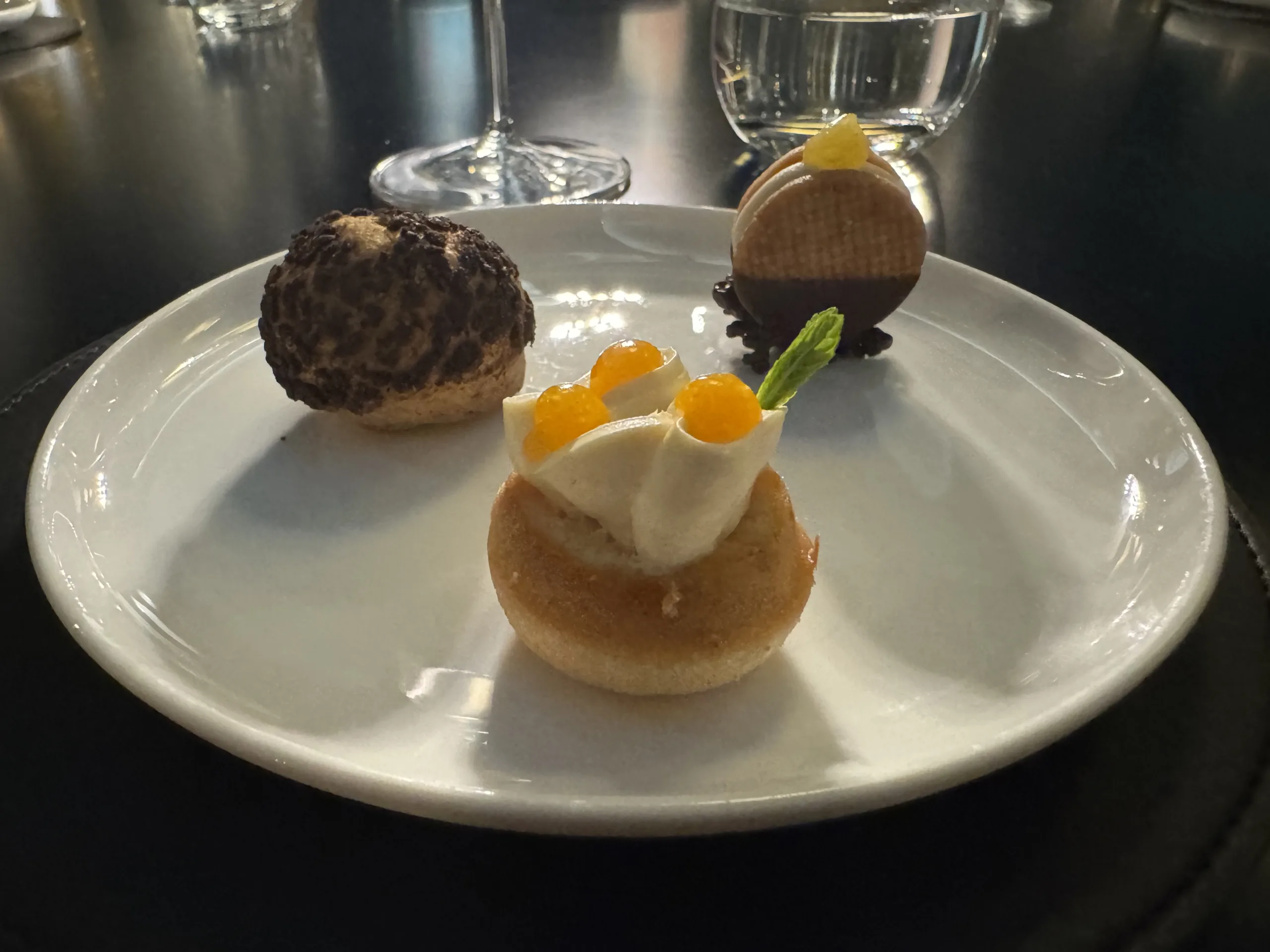 La piccola pasticceria: Craquelin al cioccolato; Financier agli arachidi, cioccolato bianco e albicocca Wafer con cremoso di agrumi – La Locanda del Borgo