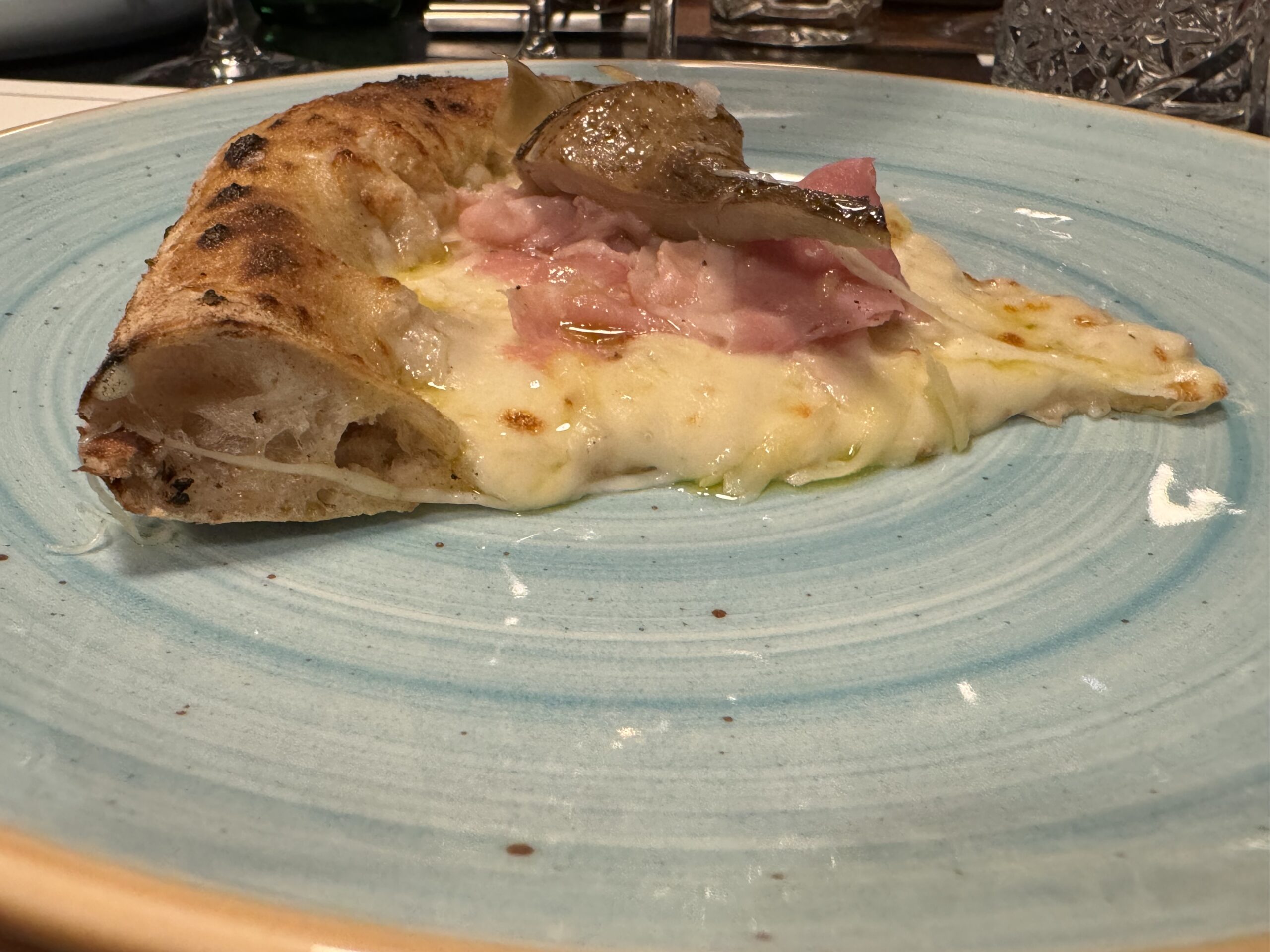 Pizza Carciofo: Fior di latte di agerola, Pancetta aromatizzata al miele in tre cotture, Carciofo con il gambo, Pecorino bagnolese, Olio evo ravece Francesco Pepe di Luogosani- Wip