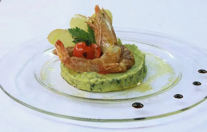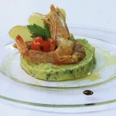 Milano, cucina di pesce, Fedegroup Gnocco di seppia scottato, il suo nero, topinambur, asparago selvatico dello chef Raimo Chiacchiera Asparagi, Patate, Seppie, Topinambur