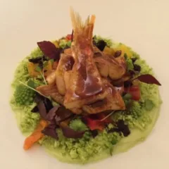 Mysocialrecipe, triglia, triglia in carpione Triglia in carpione con riduzione alla soia, cuscus di cavolo romano, papaccelle ed olive nere Triglie