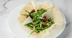 Rivoluzione vegetale, 50 Top Italy, Altamura OP, dolce&salato, ricette, rivoluzione vegetale Cestino di parmigiano con insalatona di rucola, noci, pomodorini, scaglie di pecorino ed aceto balsamico Parmigiano Reggiano, Pomodorini, Rucola