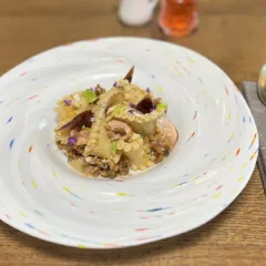 Primo Piatto dei Campi 2023, Padova, ricette, zero sprechi Coccodè di Daniele Groppo Fieno, Gallina, Latte