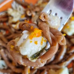 La stanza di Carmen, Calabria Busiate di grano iermanu all’arancia e baccalà arance, Baccalà, busiate