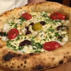Le ricette, Pane, Pizza, Lievitati, olive di Gaeta, pacchetelle del piennolo, pizza, Pizza La Spelunca, ricette pizza Pizza La Spelunca, baccalà e olive con piennolo e fiordilatte Baccalà