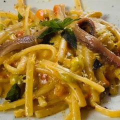 i primi, acciughe, Pomodorino Giallo, scialatielli Scialatielli della Costiera con alici, pomodorini gialli e provola 27 Settembre 2021 0 commenti