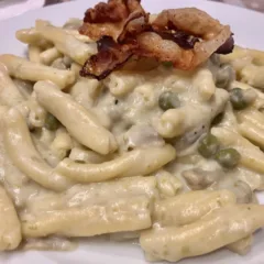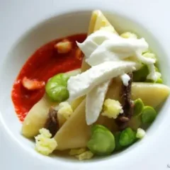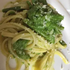 i primi Pasta con fave fresche, crema di pecorino e guanciale croccante crema di pecorino, Fave, Guanciale