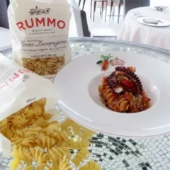 i primi, Vietri Sul Mare (SA) Lorenzo Cuomo per Rummo | Fusillotti al ragù di polpo, polvere di pane saporito e crema di acciughe 23 Ottobre 2015 0 commenti