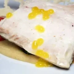Antipasti, cefalo, Mysocialrecipe, Ricette di mare, Scuole / Laboratori / Concorsi / Associazioni Trancio di cefalo di Varano al sentore di menta su passatina di cicerchie, ortiche ed il suo non caviale 1 Aprile 2017 0 commenti